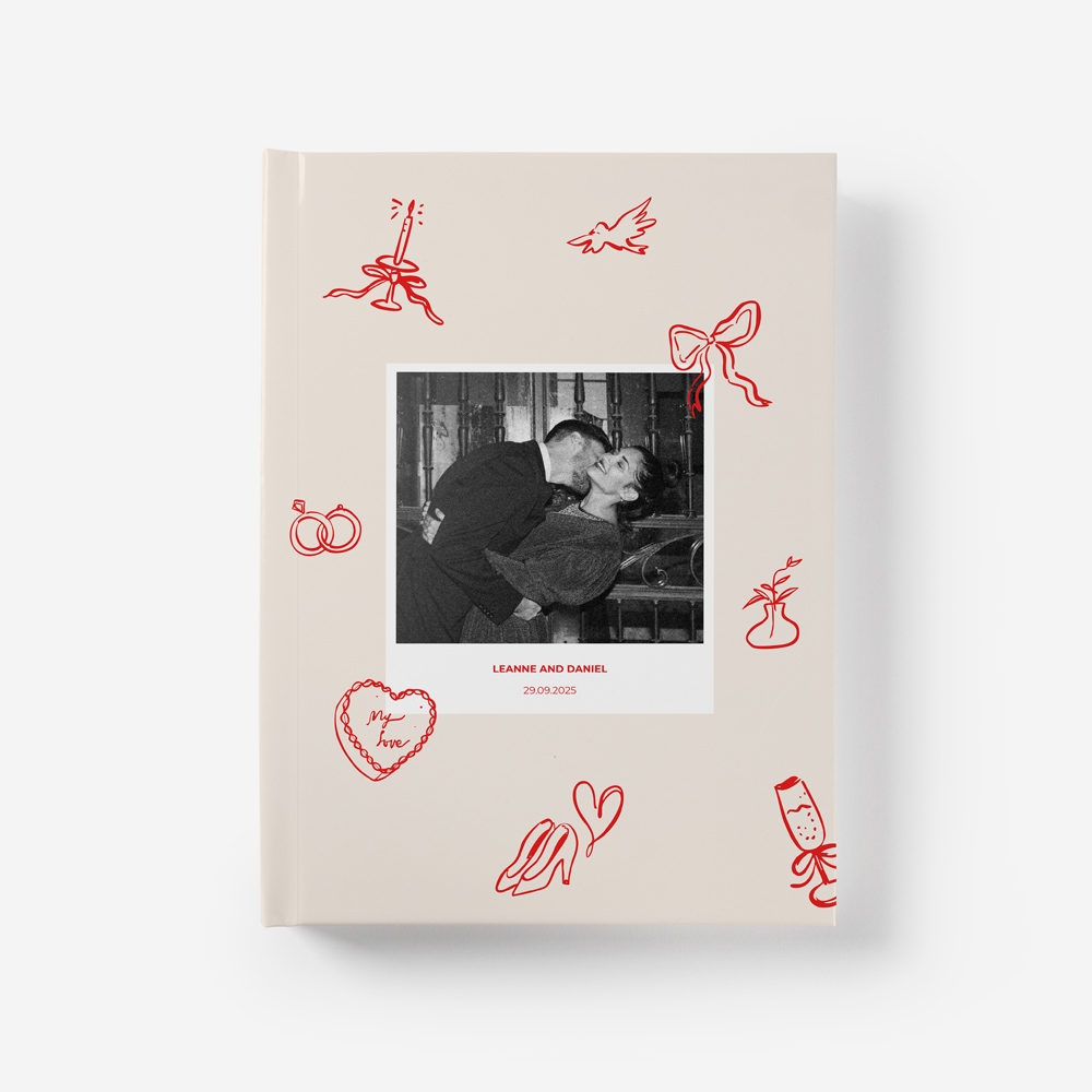 Os Álbuns Analógicos em Linho com Janela são compostos por páginas para colares as fotos com stickers.